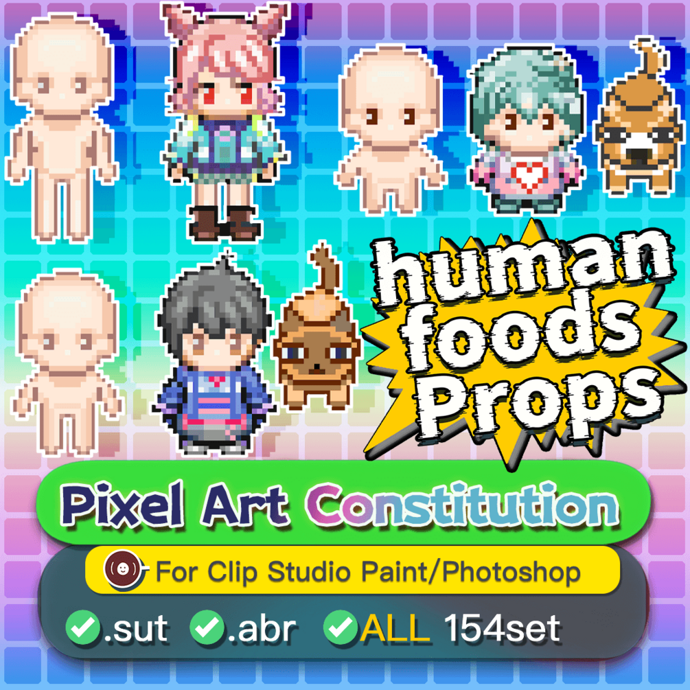 Pixel Art Material Base, props, foods. 150+ Brushe set in total.